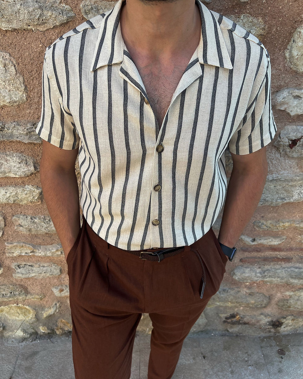 Beyaz Manşetli, Yakalı ve Çizgili, Yeşil Gömlek